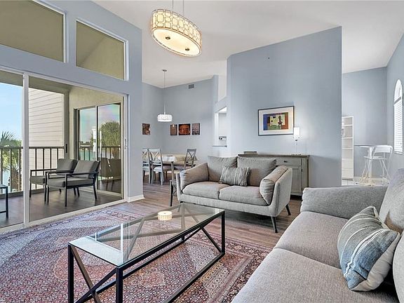 Welcome to Lakeside Gardens – The Heart of Naples, with the Lake as Your Backdrop. From the moment you step inside this top-floor, 2-bedroom, 2-bath condo, your eyes are immediately drawn to the sparkling waters of the lake, framed perfectly through expansive windows. Sunlight pours in, enhanced by volume ceilings that create an airy, open ambiance. The heart of the home is the spacious eat-in kitchen, updated with stainless steel appliances, crisp cabinetry, and a convenient pass-through to the dining area—ideal for effortless entertaining. A large sliding glass door and transom windows open to your private screened balcony, where you can savor morning coffee with a sunrise view or unwind at dusk as the sky reflects over the water. A thoughtful split floor plan ensures privacy, with generously sized bedrooms and closets for you and your guests. This home is turnkey furnished—ready for you to move right in, just in time for the season. Additional comforts include in-residence laundry, elevator access, a dedicated carport, and ample guest parking. Lakeside is a gated community built around a breathtaking 40-acre lake, offering an array of resort-style amenities: two heated pools, spa, five clay tennis courts, pickleball, shuffleboard, bocce, basketball, a tot playground, and a 1.5-mile walking path through lush, award-winning landscaping. The two-story Old Florida-style clubhouse features a sauna, fitness center, kitchen, library, and game rooms—everything you need for an active, social lifestyle. All of this, just 5 minutes to Mercato, 10 minutes to Vanderbilt Beach, and 20 minutes to downtown Naples. Your Naples lakefront lifestyle awaits—are you ready to make it yours?