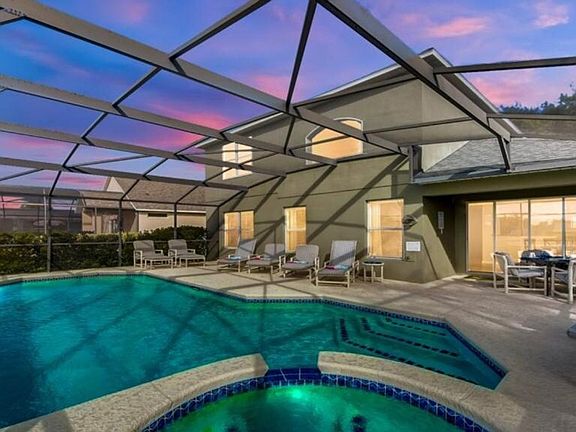 Feel at home in this spacious 5-bedroom, 3-bathroom home located in the gated Emerald Island Resort in Kissimmee, Florida. With 2,317 sq. ft. of living space, this home offers a private screened south-facing swimming pool and spa, a game room, and a fully equipped kitchen. The property is just an 11-minute drive from Walt Disney World Resort, making it an ideal location for family vacations.