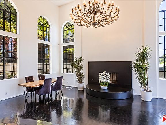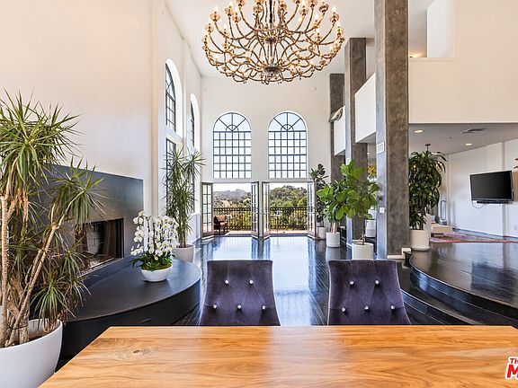 Experience breathtaking panoramic views from the Hollywood Hills to the Pacific Ocean in this gated, Contemporary Mediterranean estate, ideally located just minutes from Runyon Canyon. Spanning approximately 6,140 sq ft across four levels, this recently remodeled residence blends luxury with functionality. A grand entryway welcomes you into the dramatic great room, where soaring two-story ceilings and expansive windows flood the space with natural light. Enjoy wraparound balconies on every floor, offering sweeping views and seamless indoor-outdoor living.The entire top level is dedicated to an opulent primary suite featuring a walk-in closet, dual vanities, a private sitting room, and direct access to a private balcony. The chef's kitchen includes a charming breakfast nook and opens to the balcony for alfresco dining.Ideal for both living and working, the home offers separate entrances for five guest bedrooms and a full maid's quarters. Take the private elevator to a fully equipped custom gym and office, opening onto a grassy yard with room for a pool and unobstructed sunset vistas.Additional features include secure, gated parking for up to four vehicles and a state-of-the-art security system, ensuring both comfort and privacy in one of LA's most sought-after neighborhoods.