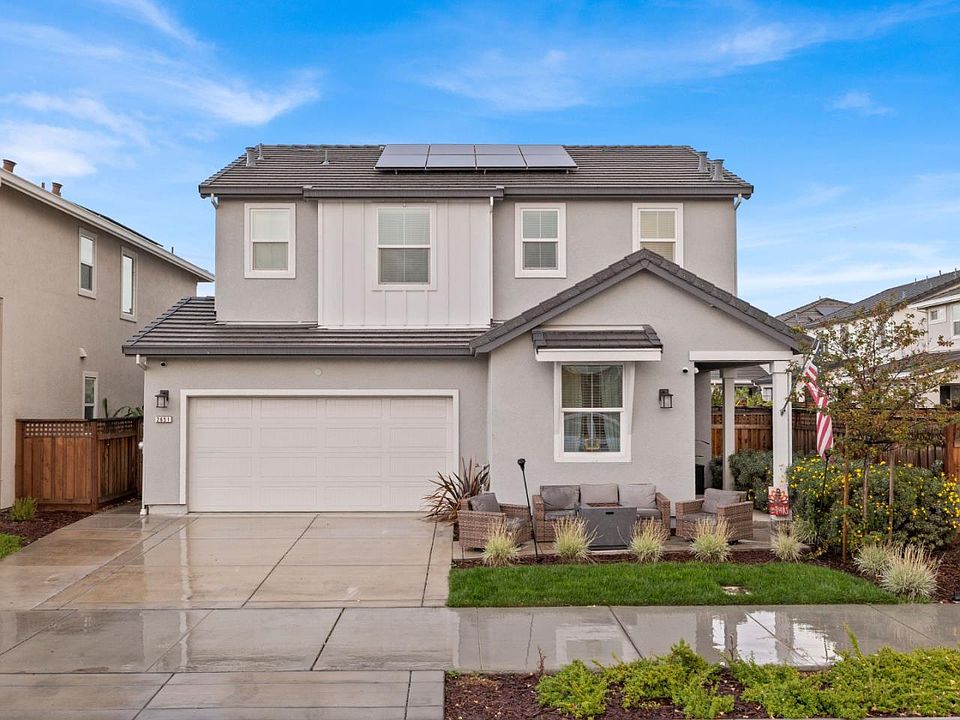 Welcome to River Islands! This stunning 3-bedroom, 2.5-bathroom, plus den/office is situated in one of Lathrop's most coveted communities. Enjoy the open concept floor plan complete with an elegant fireplace and grand kitchen island, perfect for modern living with plenty of space for entertaining. The spacious bedrooms offer ample storge with walk-in closets and sophisticated bathrooms. The California Room creates a seamless transition between the interior and exterior spaces. Delight in the custom landscaping that is well appointed for year-round outdoor living and gatherings. The upgraded garage with Tesla Charger is a fantastic bonus flex-space for a dedicated home gym, play or media room. Take advantage of all that this River Islands property has to offer; steps to lakes, parks, trails, community amenities and exclusive top rated Charter Schools. Dont miss this gem!