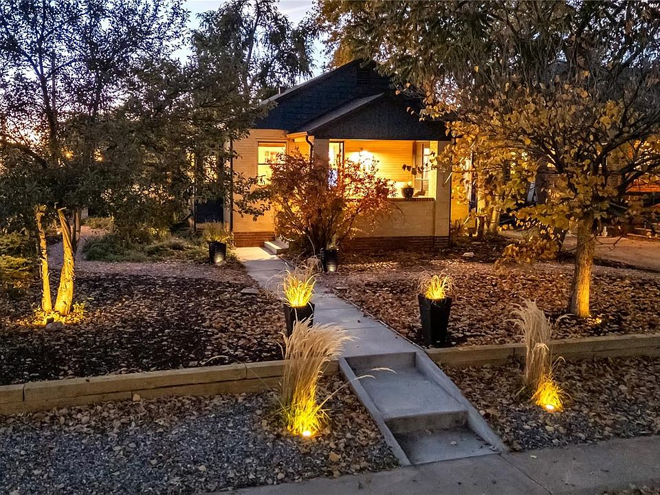 Across from City Park & City Park Golf Course, this bungalow blends classic character with modern charm in an ideal location. Elevated from the street, a xeriscaped yard features native grasses & year-round blooms leading to a private front porch. Walk through the contemporary entry door to arched doorways, cove ceilings, & hardwood floors. Sunlight fills the living room through large east & south-facing windows. The main level offers two bright bedrooms with generous closets & a full bathroom. The kitchen includes stainless steel appliances, granite tile counters, ample prep space, & abundant storage. From here, a few steps down lead to cozy basement. The lower level feels spacious with higher-than-typical ceilings & family room ideal for relaxing or entertaining. A wet bar with mini-fridge & under-stair storage adds convenience. The master suite has a walk-in shower,