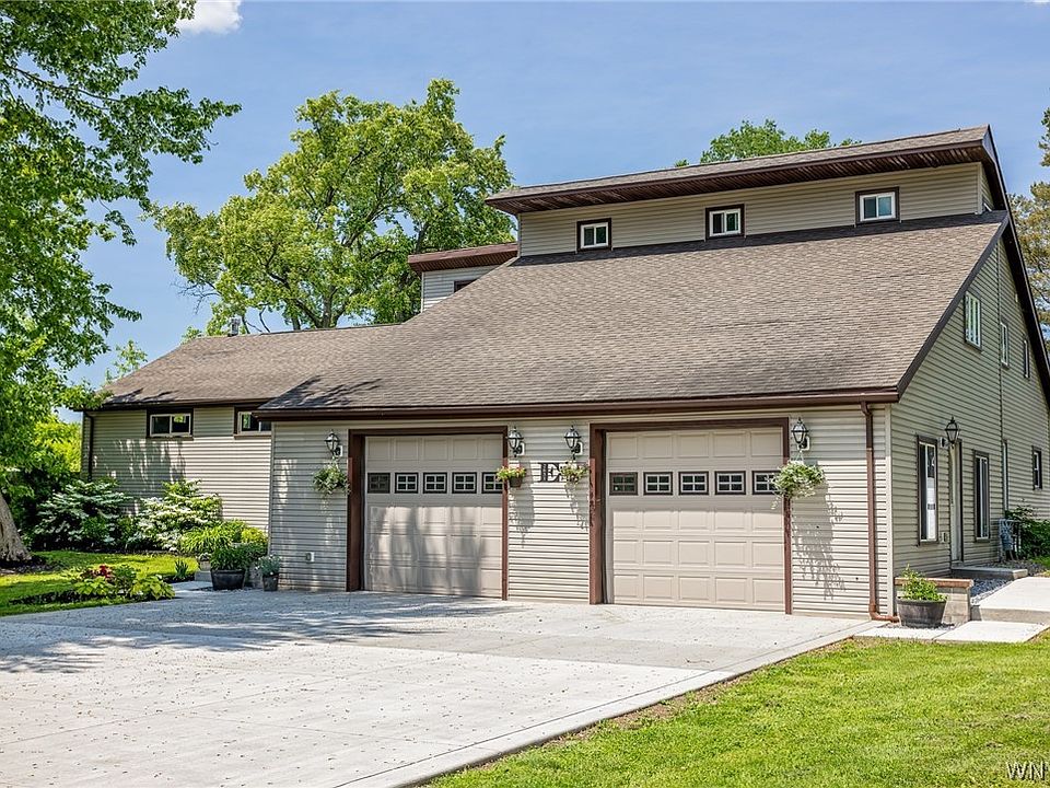 Welcome to this exquisite property with 5 plus bedrooms, 4 full baths & 1 half bath, located on over 5 acres. Step inside from attached 2 car garage with 1/2 bath and heated floors, and discover the true essence of luxury living. The kitchen is a chef's dream. Entertain with a spacious Living room with wood burning stove, perfect for hosting gatherings and making cherished memories. Embrace the outdoors in your private backyard boasting a lovely patio, horseshoe pit, pool, & huge backyard for anything your heart desires . Side patio with hot tub for outdoor entertaining and relaxation. The property features a total of 8 car garage space between attached garage and outbuildings that provides practicality and additional storage options for all your toys. Both outbuildings have full kitchens, full baths, laundry areas, and 2nd floor rooms that adds to the allure of this home, providing ample space for family and guests. Heated floors in both outbuildings, as well as on demand tankless HWT in main house and outbuildings. This property offers countless amenities, making it a home like no other. Enjoy country living with modern convivences, and minutes to NYS Thruway. This is a remarkable home! Experience the epitome of luxury living! Sq Footage determined by appraiser. See attached document. Pembroke School District!