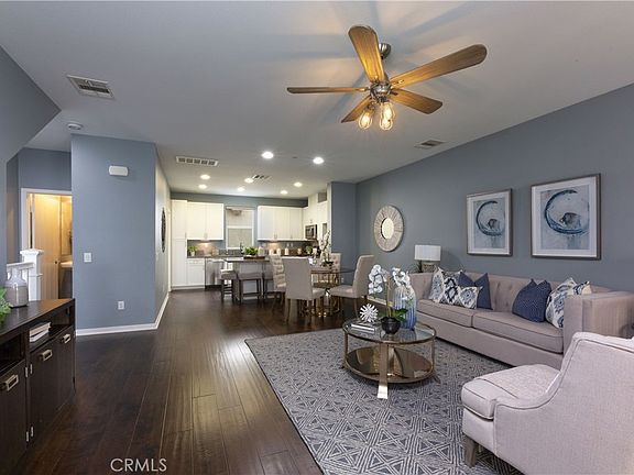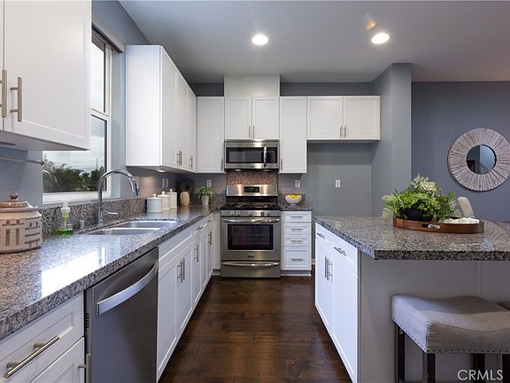 You’ll find everything you require for gracious living and elegant entertaining in this fabulous, 3-level townhome located in a quiet gated enclave of stylish residences built in 2016. Designed with tasteful, high-end designer finishes, a custom paint palette of soft complimentary Sherwin Williams colors, thoughtful storage options and alcoves for displaying art and photos, and an eye to comfort and luxury, this home is turn-key and ready to move right in. On the lowest (entry) level, you have direct access to the 2-car finished garage and you’ll find a sunny bedroom with its own convenient bathroom with a walk-in shower (perfect as guest quarters). Step up to the open concept main level and imagine yourself gathering with family and friends in this bright, airy space, stepping out to the terrace and watching hummingbirds visiting their colorful feeding station. Handsome engineered and textured laminate wood floors flow from the spacious great room to the dining room and into the sparkling kitchen perfect for creating meals while still being part of the action. The kitchen features gorgeous granite countertops and matching backsplash, stainless steel appliances, sleek contemporary kitchen cabinetry, energy-efficient recessed lighting, and a massive center island with seating and extra storage. A window over the double sink adds natural light. Also on this level, a handy laundry room with shelving, ample storage for a pantry and a guest powder room. Upstairs, there are 3 bedrooms, all with plush newer carpet. You’ll be delighted with the spacious primary suite. A sunny bedroom with designer ceiling fan and walk-in closet adjoins your private bath featuring vanity with two deep undermount trough sinks, oversize step-in shower and a private water closet. The two secondary bedrooms on this level share a bath with tub/shower. Additional amenities of this lovely home include plantation shutters, designer stairway balusters and balustrades throughout, textured ceramic tile flooring in entry, bath and laundry area, tankless water heater, plus a big 2-car attached, drywalled garage with epoxy floor. The community beyond your front door offers so much to do, thanks to a perfect location near shopping, dining, and entertainment (Disneyland and Knotts Berry Farm among them). You’re only a mile from Beach Blvd and an easy drive to Huntington Beach and Pacific Coast Highway for visits to the surf and sand.