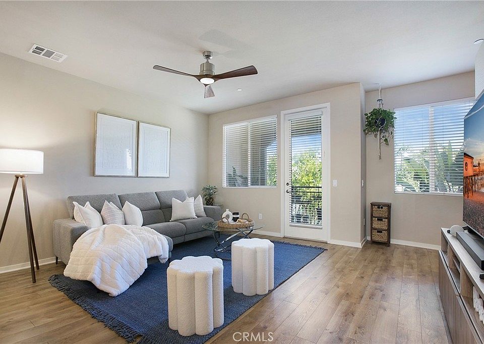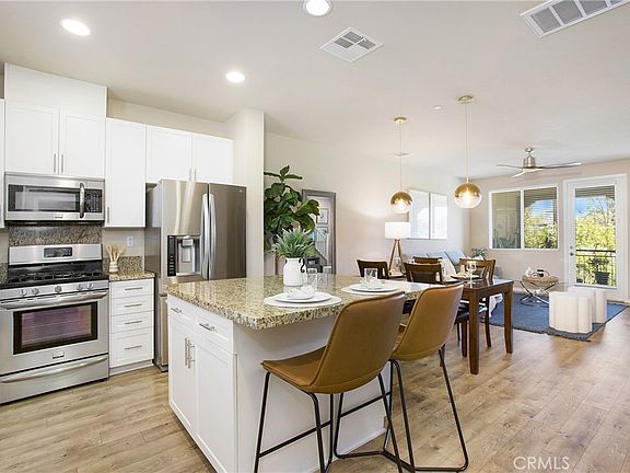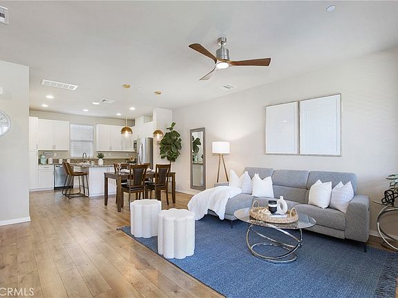 Modern Comfort Meets Timeless Charm in This Turnkey Tri-Level Townhouse. Welcome to your next chapter in this stunning tri-level townhouse, tucked within a gated community that offers the perfect balance of exclusivity and comfort. Built in 2017, this home is not only turnkey, but thoughtfully designed to suit modern living—with room to grow, gather, and thrive. Enter through the traditional Spanish-tile entryway and into a welcoming foyer that leads to a spacious 3-car garage—ideal for vehicles, a home gym, or that creative space you’ve been dreaming of. A beautiful wood staircase leads to the main living area, with ample under-stair closet space perfect for keeping life effortlessly organized. On the second level, an open floor plan creates an ideal setting for entertaining or relaxing. A convenient powder room offers easy access for guests, while the living room opens to a private balcony, perfect for quick BBQs or sunset moments. Updated pendant lights highlight the dining area, and the chef’s kitchen shines with a large center island, complete with hidden storage to keep your prep space clutter-free. The dedicated laundry room on this floor adds to the home’s practical elegance.