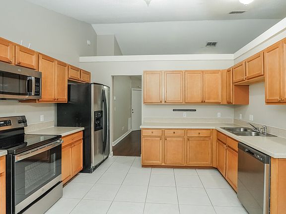 This rental home in Eustis, Florida comes with three bedrooms, two bathrooms, and an attached two-car garage. Large windows and a vaulted ceiling give the living room a modern edge. The kitchen includes stainless steel appliances and terrific cabinet space. The main bedroom comes with dual closets, a walk-in shower, and beautiful vinyl plank flooring. Invite family and friends over to kick their feet up on a spacious screened porch that overlooks the fenced-in backyard. Begin your application for this home today!