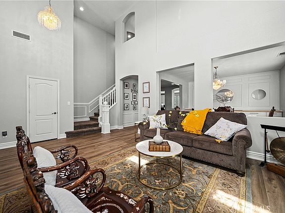Located in the prestigious community of Stevenson Ranch, this beautifully upgraded residence offers elegance, space, and exceptional comfort. With 4 generously sized bedrooms, 3.5 luxurious bathrooms, and 3,480 sq ft of refined living space, this home is perfect for those seeking style and sophistication. Step inside to discover neutral tones and laminate wood flooring flowing through the main level, creating a warm, inviting ambiance. The formal living room boasts vaulted ceilings, a stunning fireplace, and an abundance of natural light. Just beyond, the expansive family room provides a perfect gathering space for relaxing or entertaining. Elegant imported chandeliers for that special touch. The chef's kitchen, featuring striking granite countertops, a large center island, a breakfast bar, double ovens, a Viking cooktop, and an abundance of cabinet storage designed to impress. The second floor includes a retreat to your luxurious master suite, complete with a remodeled spa-style bathroom featuring a white sparkling free-standing jetted tub, separate glass-enclosed shower, his and her white marble vanities, and a spacious walk-in closet. Three additional oversized bedrooms each include walk-in closets, with one offering its own en-suite bathroom, perfect for guests or extended family. An office nook adds the perfect touch of convenience for work or study. French doors leading to a private backyard complete this home's long list of upgrades. The 3-car tandem garage offers the flexibility to convert into a 5th bedroom, gym, or bonus space as needed. This is truly a rare gem meticulously maintained, fully upgraded, and situated in one of the most desirable neighborhoods. With so much to offer, this home won't last long.