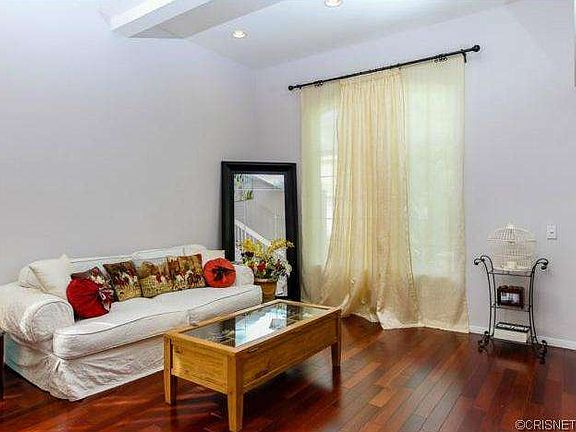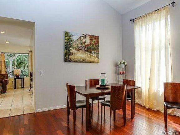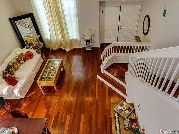 End of cul de sac, cherry wood flooring living room stairs master bedroom & 1other bedroom. Tile floors kitchen and family room & bath rooms. Stainless stove/oven & D/W. Down Stairs bedroom & full bath, materbedroom has large walk in closet ~ Large Walk out deck ~ master bath has soaking tub & sep shower. Back yard (no rear neighbors) private, large patio cover (deck).Community : Pool / Spa / Tennis Court / Play ground.Just minutes from the 14 freeway, close to shopping and great schools