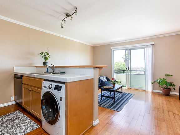 A modern, fully upgraded, 1 bedroom condo being offered for lease in the charming and eclectic neighborhood of Golden Hill/South Park. Hardwood/bamboo laminated floors, stainless steel appliances, dishwasher, built in microwave, washer/dryer in unit. Carpeted bedroom with mirrored closet doors and bathroom ensuite. Top floor unit with private Juliet balcony, peek-a-boo view of the Coronado bridge! Double pane windows and doors, large accessible attic for storage, skyline views of downtown San Diego! Secure designated garage parking. Water trash and recycling included in the rent.