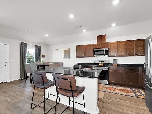 Super cute home in a newer neighborhood with all the modern touches! This home features beautiful granite countertops, updated light fixtures, and durable LVP flooring throughout the main areas. The open floor plan offers great flow between the kitchen, dining, and living spaces. Perfect for everyday living or entertaining. Enjoy peaceful views from your backyard that backs up to a retention pond with no neighbors directly behind you. Located in a growing community where you can even get Walmart drone delivery! Convenient to schools and major roads, this home combines comfort, style, and a little modern convenience you won’t find everywhere.