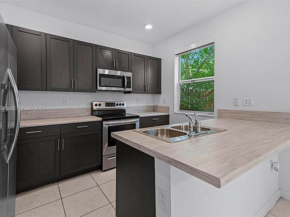 Discover this beautifully upgraded 3BD/2.5BA corner townhouse located in a desirable gated resort-style community! This move-in-ready home features a modern kitchen with wood cabinetry, a granite composite sink, and stainless steel appliances. Enjoy tile flooring on the first level and laminate flooring upstairs, creating a clean and cohesive look throughout. The open-concept living and dining area flows effortlessly to a private fenced patio and backyard with AstroTurf perfect for entertaining and completely low-maintenance. The spacious primary suite offers a walk-in closet and an elegantly updated en-suite bathroom. Convenience is elevated with an upstairs laundry area, complete with washer and dryer. Smart-home features include a Ring camera, WiFi extender, and tankless water heater. The home also includes a one-car garage for added storage and convenience. Residents enjoy an impressive list of amenities: clubhouse, pool, gym, lake, park, and secure gated entry. Ideally situated just minutes from the Turnpike, shopping centers, and only 30 minutes from Key Largo. Stylish, secure, and perfectly maintained this home is an opportunity you won't want to miss!