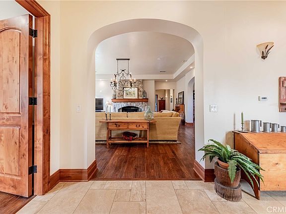 Discover unparalleled elegance in the prestigious De Luz community of Temecula, where this French Country estate offers a harmonious blend of luxury and natural beauty. Set on over five acres, this 3,024 sq. ft. custom-built home is designed for those who seek sophistication and seclusion while remaining just minutes from Old Town Temecula, world-class wineries, and convenient freeway access. The property also includes a separate, beautifully designed 665 sq. ft. apartment above the three-car garage. With its own private entrance, full kitchen, bathroom, and a patio offering breathtaking views, it is perfect for guests, extended family, or as a potential rental. Every detail of this three-bedroom, five-bathroom home exudes quality and craftsmanship. The open floor plan features radiant heated hardwood floors with four customizable zones, soaring 12-foot ceilings, alder wood doors, handcrafted wood, and stone accents. A stunning stone fireplace anchors the living space, while oversized wood-framed windows flood the home with natural light. The chef’s kitchen is a culinary dream, boasting a Jenn-Air six-burner range with a grill and double ovens, stainless steel appliances, green granite countertops, custom cabinetry, a walk-in pantry, and a spacious center island with a vegetable sink. The sunny breakfast nook offers stunning views of the De Luz countryside, creating the perfect backdrop for morning coffee. The expansive primary suite is a serene retreat, complemented by a spa-like bathroom. A generously sized office and an enormous laundry room with abundant storage add to the functionality of this home. The grounds feature approximately 400 professionally managed avocado trees, producing over 31,000 pounds annually, alongside a variety of fruit trees. A handcrafted stone walkway leads through lush landscapes reminiscent of a private winery, while night lighting transforms the property into a magical retreat after sunset. The gated entry, complete with an ornate stone and wrought iron, sets the stage for this one-of-a-kind estate. The long, scenic driveway, surrounded by cypress and pine trees, welcomes you home to a place where craftsmanship and nature unite. Experience the essence of Temecula living with breathtaking views, timeless design, and unmatched tranquility.