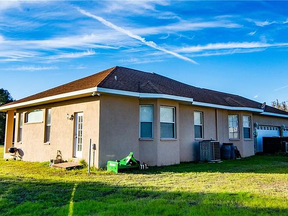 Come enjoy the quiet while being close to the heart of Wesley Chapel. This custom built home is situated on 1.19 fully cleared acres. This beautiful Corner lot is lined with crepe myrtle trees. The home features 4 bedrooms/3 bathrooms and 3 car garage (side entry). Enter the foyer that opens up to formal living and dining room with high ceilings and French doors that exit to lanai. To the right you will find a large master suite with dual walk in closets, large master bathroom with garden tub and 2 separate vanities, and a walk in shower. To the left you will find indoor laundry room, 2nd bathroom, and 2 bedrooms. Bedroom 2 features bead board and a window seat, Bedroom 3 features built in shelves. The kitchen opens to the large family room and breakfast nook area with lots of natural light. Stainless Steel appliances, glass tile back splash, tile counter top, with closet pantry. To the back of the home in this 3 way split floor plan is the 3rd bedroom with custom built in shelves, and window seat. Just outside of bedroom 3 you will find 3rd bath with rear exit great for future pool bath. Tile floors throughout. Lots of Crown Molding. Excellent location, minutes from I-75 & I-275, The Grove shopping center, Florida Hospital, Wiregrass Mall, Tampa Premium Outlet Center, new Community College campus and all the great shopping and restaurant options. USF, downtown Tampa, and Tampa Airport are all a short drive. Zoned for the new Middle/High School.