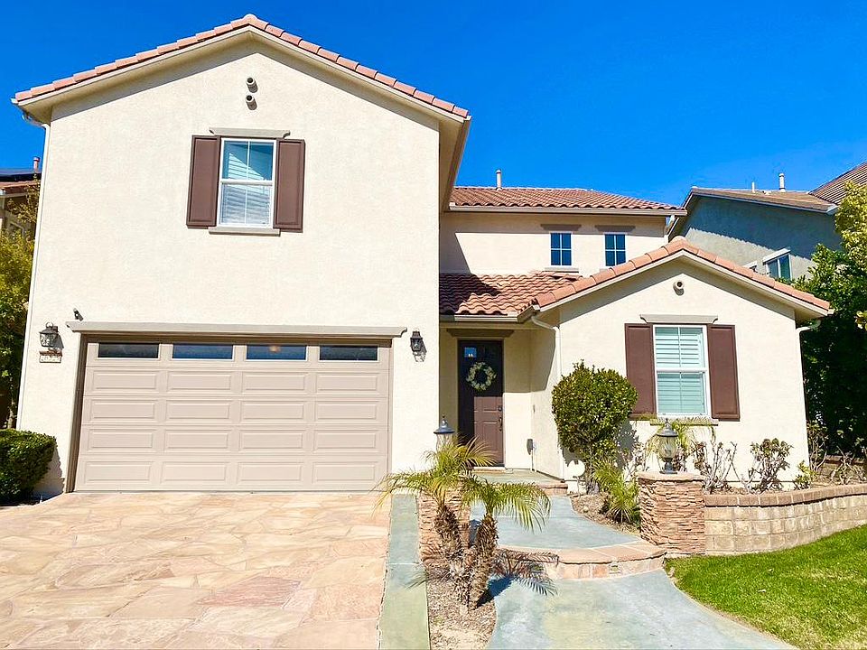 This spacious home includes 3,500sq.ft. of living space, 5 bed/4 bath, 3 car garage house, 1 bedroom and bathroom downstairs, vaulted ceilings, formal dining room, great room with fireplace, gourmet kitchen with Butler's pantry and an abundance of cabinet storage space. The kitchen includes a large island with granite countertops, built-in stainless steel appliances. New appliances include: stove, dishwasher, washer and dryer. Wood flooring downstairs with a fireplace in the great room. Designer light fixtures, chandeliers and ceiling fans included. Plantation shutters throughout the house. 3 nice sized bedrooms upstairs, 1 of them has an en-suite bathroom. The Primary Bedroom is expansive with 2 large walk-in closets and large bathroom. The garage includes a 240-volt outlet for your electric car. Soft water system. Backyard has a beautiful patio cover and large area of artificial turf. WALKING DISTANCE to park, bike trails, paseos. Close to top rated high school and elementary school, shopping centers, grocery stores, restaurants mall and freeway. Enjoy the Resort-like HOA pool, spa and built in bbqs. This house has it all!