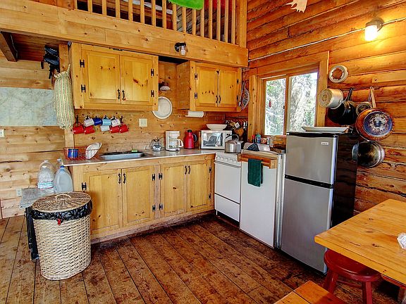 This is an original Alaskan Log Cabin! Shirley Lake frontage. Cabin is dry. has a bathroom with a shower, and a kitchen sink hooked up to gray water drainage. Wood floors throughout. Bedroom downstairs with are in the loft for two more! Very private and secluded. Includes tie downs and access to the airstrip, FAA Designator AK90. More pics coming soon too!