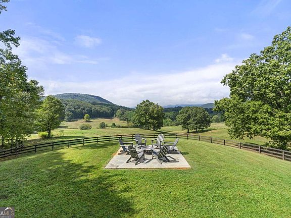 Overlooking what may be the most spectacular views in Sautee Valley, this five-bedroom, four-bath retreat is designed to capture the beauty and lifestyle of the mountains. Spacious yet comfortable, it seamlessly blends everyday living with room for entertaining, hosting friends and family, and enjoying ample outdoor space-for fido, a dream garden, or even a mini pony. On the main level, the dining room and cozy living room each feature their own fireplaces, while the kitchen - with a walk in pantry- flows effortlessly overlooking both spaces, all backdropped by gorgeous mountain vistas. The expansive primary suite offers private deck access, a soaking tub, separate shower, and water closet. Another bedroom suite, two additional bedrooms, a full bath, and a laundry room round out the main level. The terrace level is designed for fun and relaxation with a recreation space complete with built-in bunk beds, pool table, and private access to the hot tub. The grounds span approximately ten acres with dedicated pasture, front and backyard play spaces, and multiple ideal garden locations. A three-board horse fence punctuates the property, creating a storybook entrance. The detached two-car garage with flexible studio space invites endless possibilities-whether as a pottery studio, office, art retreat, garden headquarters, teenage hangout, or he/she/we shed. Enjoy the bucolic charm of the valley while being just a short drive from North Georgia's favorite destinations like Lake Burton, Sautee Nacoochee, wineries, dining, art studios, hiking, and more.