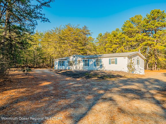 Prime location! This 3 bedroom, 2 bath ranch home sits on a secluded 3.99 ACRES of pristine pinelands. You'll find the living room welcoming and spacious and opens to a lovely formal dining room. Next the bright eat-in kitchen has a considerable amount of oak cabintry and a center island. A fireplace can be found in the cozy den. The large master bedroom offers 2 double closets and a large master bath. The master bath has double sinks, a soaking tub and a shower stall. The addt'l 2 bedrms are generously sized and both have walk in closets. High ceilings in the basement, perfect for finishing & offering an additional 1846 sq ft. Outside find the detached 2 car garage equipped with heater and electric. Private yet close to shopping, beaches & GS PKWY