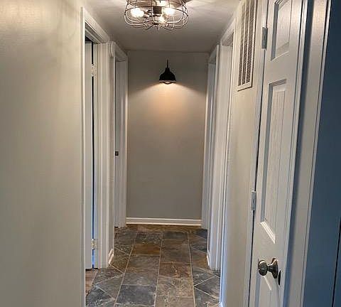 Forest View and a creek runs through it! All completely redone spring 2020, backs up to Dellwood forest adjacent to disc golf fields. Natural 20" stone tile in updated "Barn Feel" kitchen, pantry, huge family room with slate floors, updated light fixtures, faucets, new luxury vinyl in beds and powder room. 3 beds, 1.5 bath, main bath has marble tile. New stainless appliances, dishwasher, laundry too. Lots of closet and cab space. Large shared 1.5 acre yard for kids to run in! Extra Shed storage space- $75- 150 Tenant responsible, 2yr preferred