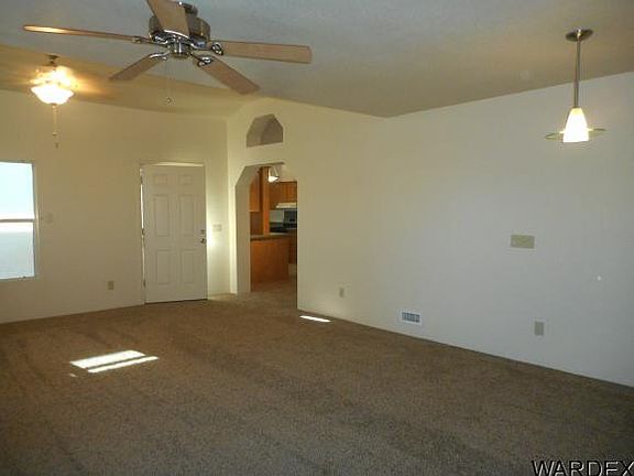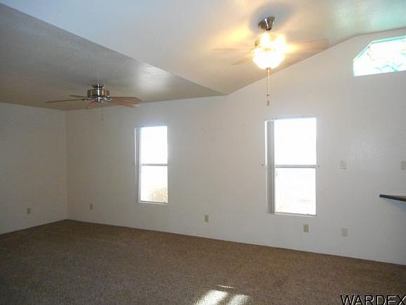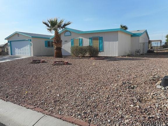 Live Fort Mohave AZ ~ Must see to appreciate! Great first time home buyer, retirees or 2nd home! This spacious 1647 sq ft home has 3 bedrooms and 2 baths with detached 2 car garage. Home features exterior window coverings, security doors on both front and back door to enjoy the breezy nights, vaulted ceilings, formal living room with built in nook and stained glass window and additional family room with a cozy fireplace, large kitchen with casual eating area and built in desk. Master suite has a large walk in closet, his and her sinks with seating area in between, large garden tub, and separate shower room. Back yard is fully fenced and has room for RV parking on the side. Low HOA Community with 2 pools, and dog parks.