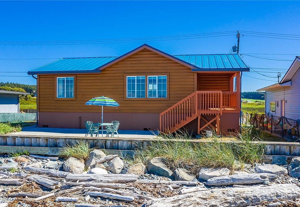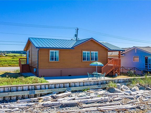 Sunset Beach waterfront home with views that are never-ending - stroll the beach, watch sunsets, cruise ships & eagles from your living room windows looking across the Strait of Juan de Fuca to the Olympic Mtns & the San Juan Islands. Huge Vacation rental potential, or enjoy as a year-around home or vacation getaway. Two separate bedrooms & 2 baths provide privacy when desired, while the great room encourages camaraderie. Covered deck for enjoying the view all year-round, huge beachside patio!