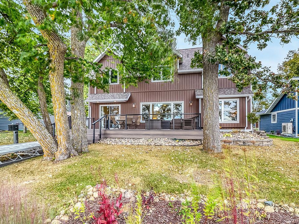 This 3 bedroom and 3 bath 2020 custom built home was designed with care and purpose. The main floor offers all amenities needed for day to day living. The upper level offer two large bedrooms, a 3/4 bath and a family room with lake views, additional storage and vaulted ceilings. The lot is level and transitions into the lake with ease. The lake shore is firm and clean with a gradual transition to deeper water. It's great for swimming and boating. The property faces the SW and will offer extraordinary sunsets and lake views