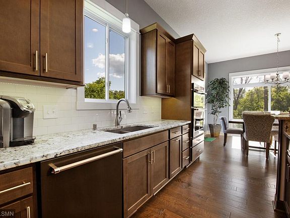 WOW! Why build and have to wait when you can move right in to this beautiful newer construction rambler that was a former model home with all the upgrades. Soaring 12 ft ceilings on the main floor and tons of natural light welcome you as you enter the main floor. Features include security system, engineered hardwood floors, granite counters, black stainless steel appliances, and a fireplace with stone from floor to ceiling. Expansive master bedroom features a coffer ceiling and walk-in closet, while the master bathroom includes in floor heat. Cozy up to the fireplace with a rustic mantle in the massive lower level family room or belly up to the wet bar for your favorite cocktail. Lower level also has 2 bedrooms and a gym to burn those calories! Outside you'll find a huge fully fenced-in yard or you can hang out in the newly epoxied floor in the large heated garage. This home is sure to please! Hurry and see today!