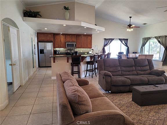 Enjoy this charming 4-bedroom, 2-bathroom home located in the city of Helendale, California. This property offers space for privacy and outdoor enjoyment. This home boasts 2,279 square feet of comfortable living space, providing plenty of room for a growing family or those who love to entertain. The master bedroom includes an en-suite bathroom with separate tub and shower for added convenience and privacy. The remaining three bedrooms are generous size with ceiling fans. The spacious living area includes a gas log fireplace and gorgeous wood mantle. The kitchen has a huge walk-in Pantry, roll-out cabinets, and a handy counter top with barstools. The indoor laundry room leads to a 2 car garage, and a golf cart garage. The fully fenced back yard outdoor space is low maintenance with faux grass and a plum and apple tree. The backyard backs up to the middle/high school for an unobstructed sunset view, great for hosting gatherings, gardening, or simply enjoying the peaceful surroundings. Solar SunRun lease to be taken over by new owner by qualification, installed in 2016. This home is in a great location for commuting to Fort Irwin, Boron Mines, or BNSF Railway. Only 2hrs and 45mins to Las Vegas, or 1hr and 30mins to Big Bear Lake, makes for a great getaway. HOA ammenities include an Olympic size pool, hot tub, kiddie pool, 27 hole golf course, driving range, tennis, pickle ball and bocce ball courts, clubhouse, youthroom, lakes, sandy beaches, fishing, library and gym. RV storage, and Equestrian center also available.