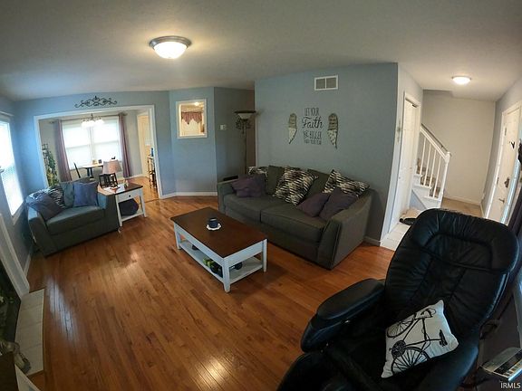Beautiful 2 story home, less than 1 mile from Castle Schools on a quiet road with a 2-car attached garage. The 20 x 30 pole barn has plenty of storage with, three rows of built in shelving. Gorgeous Sunroom overlooks a large, fully fenced back yard with privacy trees. Beautiful hardwood flooring flows through the living room (with fireplace) into the dining area. The kitchen offers white cabinetry, tiled flooring, 2 pantries and a laundry closet. There is also a 1/2 bath on the main floor. Upstairs you will find a master bedroom with a large master bath and walk-in closet. Down the hall you will find 2 more bedrooms with large closets, a full bath, and a very large 12x20 4th bedroom or bonus room. In the back yard enjoy the firepit, a covered patio with L shaped sofa next to the 12x10 shed and plenty of room in the pole barn to store your RV, boat or other "toys". 2018 New Water Softener 2018 Added drainage to yard to send water from house, pole barn and yard underground to the ditch 2019 New HVAC System under maintenance contract with A+Derr (can be continued with new owner) 2020 New Sunroom with 2 sliding glass doors and aggregate floor 2020 Added gutters, garage door, poured concrete floor and electric to Pole Barn 2022 New door to Master Bath