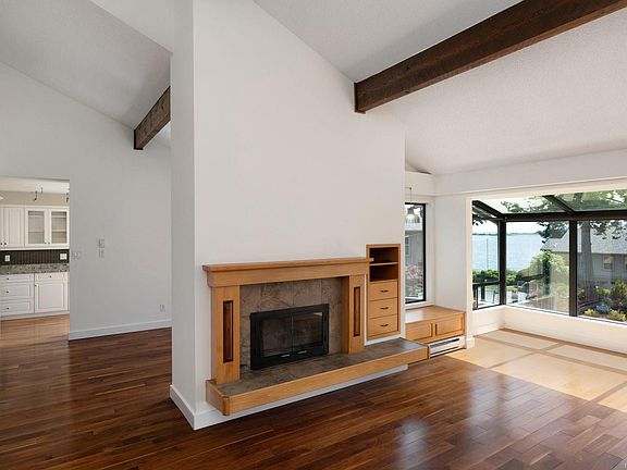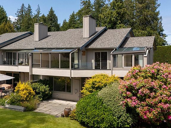 Welcome to Turgoose Point Estates—an oceanside gem offering stunning views, private beach access & lush manicured gardens. This updated 3BD/3BA, 1935 sq ft end-unit townhome boasts panoramic ocean vistas while remaining sheltered from cool sea breezes—ideal for morning coffee on the balcony. Inside, enjoy a beautifully remodelled galley kitchen w/ granite counters, s/s appliances, glass tile backsplash & cozy breakfast nook. Natural light floods the home, enhanced by hardwood floors, 15' vaulted ceilings & a charming wood-burning fireplace. Updated baths add a modern touch. Step onto the sunny patio surrounded by vibrant year-round blooms. The attached 2-car garage provides ample storage. Located minutes to Sidney, BC Ferries, airport & Victoria. Stroll to shops, dining, Lochside Trail & Panorama Rec Centre. A perfect blend of serenity, nature & luxury—vacant & ready for immediate possession. Move in today & start living your coastal dream!