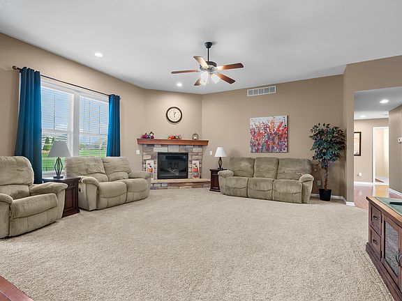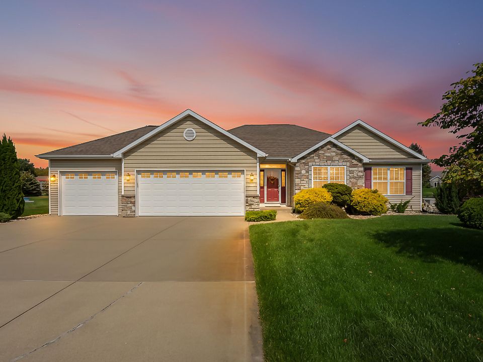 Welcome to this warm and inviting 4 bedroom, 3 full bath home in the highly desirable Prairie Edge neighborhood! Perfectly located near schools, Portage, and US-131, this home combines convenience with comfort! Inside, you'll love the open floor plan with 10' ceilings, large living area and a cozy gas stone fireplace! The custom kitchen is designed for both everyday living and entertaining, featuring beautiful hardwood floors, granite countertops, a center island, stainless steel appliances, a walk-in pantry, and plenty of counter space. The eating area is spacious and features sliders out to the patio! The main floor offers a spacious primary suite, two additional large bedrooms, and another full bath - providing plenty of room for family or guests. A convenient laundry room is also located on the main level.