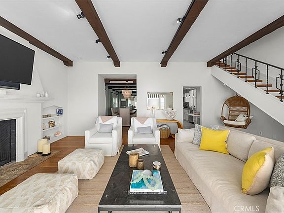 This beautifully maintained, classic beach bungalow was handcrafted in 1932. Bask in all the quality and timeless charm of the 1930's, including peg and groove oak hardwood flooring, lath and plaster finished walls and ceilings, hand hewn wood beamed ceiling in the living room, two gas lit wood burning fireplaces, art deco tile, classic metal railings and grandfathered in, three car, side by side garage parking. Beneath the garage and accessed from a private brick patio, find charming his and hers beach baths and dressing rooms, plus a handy workshop that may have doubled as an old school bomb shelter back in the day.