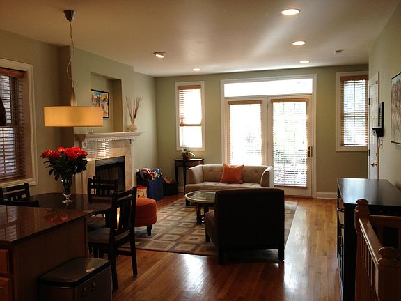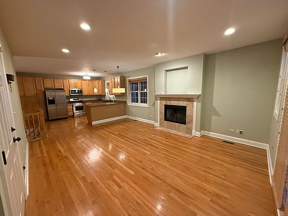 An enormous 2600+sf duplex down on a quiet, tree-lined cul-de-sac street just one block north of Chicago Avenue. Close to parks and restaurants, buses and the Metra - 1 stop from Union Station. A 3 Bedroom, 3 Full Bathroom unit with hardwood flooring, granite and stainless steel kitchen with dishwasher and microwave, gas fireplace, private deck and patio, in-unit laundry, 2 storage units, central heat/AC, and 1 garage parking spot. Newly renovated primary bath.
