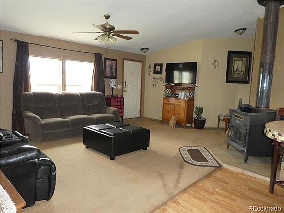 Great views from this remodeled and upgraded manufactured home. The study/den is currently being used as a fourth bedroom but the septic is for a 3 bedroom home. Master bedroom has been remodeled with a tiled walk in shower. Nice fenced back yard for their dogs and a large shed. Sprinkler system both front and back. The kitchen wall has been partially removed to give that great room feel and a nice tiled counter with seating. Nice west facing front patio area. Great price and lots of room on this almost 6 acre lot and direct access off the county road.