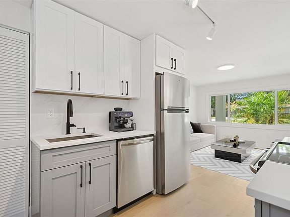 One or more photo(s) has been virtually staged. Step into this fully renovated, professionally designed 1-bedroom, 1-bathroom apartment Perfectly located just east of Downtown Sarasota and adjacent to the Legacy Trail, this property blends luxury, functionality, and location. From the moment you enter, you're greeted by abundant natural light, thoughtfully placed windows, and serene views of lush, mature landscaping. The kitchen outfitted with GE appliances, classic shaker cabinetry, and stunning custom Calacatta Statuario quartz countertops. No detail was overlooked in the full-gut renovation, which also includes: Fiandre Italian porcelain tile and Delta fixtures in all baths, 7-inch wide plank white oak flooring throughout, Brand-new roof, impact-rated windows, plumbing, water service, sewer, and electrical. Located just minutes from downtown Sarasota and a short drive to Siesta Key Beach, this is the turnkey, design-forward home you've been waiting for offering the rare blend of lifestyle, luxury, and long-term value.