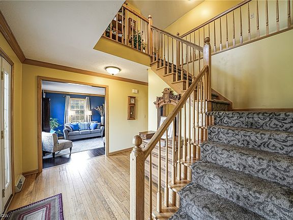 This custom-built center hall colonial is in the highly sought-after Hudson Park Estates neighborhood, renowned for its swim/tennis community. Set amidst a picturesque landscape, this meticulously maintained home boasts 4 bedrooms and 3.5 baths. The heart of the home lies in its Studio 76 designed kitchen, a haven for culinary enthusiasts. Featuring an expansive layout, ample counter space, a plethora of cabinets, a center island, double ovens, and stainless-steel appliances, it promises to delight any chef. Note the elegant wine bar and refrigerator, adding a touch of sophistication. Gatherings are destined to be memorable in the inviting family room, conveniently adjacent to the kitchen, complete with a custom-designed gas log fireplace. For formal occasions, the dining room offers hardwood floors, crown and chair moldings. French doors in the living room lead to the step-down family room, enhancing the flow of the main level. A first-floor study, with built-ins, provides a secluded workspace for productivity. Upstairs, the spacious master bedroom boasts a walk-in closet and a tastefully updated master bath featuring a smart shower with multiple heads. Three additional bedrooms, each boasting a custom-designed closet organizer and ceiling fan, along with a full bath, round out the second floor. The lower level has been thoughtfully finished and carpeted, offering additional living space for various purposes, complemented by a bath. Convenience is paramount with a first-floor laundry and a two-car garage featuring additional storage and hot/cold water. Pride of ownership shines throughout the home, evident in every detail. Step outside and revel in nature's beauty from the custom-paved patio, large hot tub, and the expansive lot adorned with stunning mature trees. In addition to a home warranty for peace of mind. This home presents a rare opportunity to experience the epitome of comfort, luxury, and convenience in one of Hudson's most coveted communities.