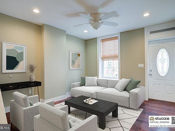 What a wonderful home, ideal for the first time home buyer and someone who craves outdoor space. Welcome to 2655 Braddock St a 2 bedroom, 2 full bath row home in East Kensington that delivers on location, modern amenities and massive patio/deck space. As you enter the home you’ll notice how sunlight floods each floor from front to back, and offers high ceilings, hardwood floors and recessed lighting throughout. The living room sits at the font of the home and is both well proportioned and comfortable, perfect for cozying up in front of the television or with a good book. The center staircase layout creates separation without losing an open and airy feel. This is where you’ll find the first full bath and flex space, great for your work from home needs or to showcase your favorite books/records. The open kitchen and dining area is bright with its two large windows, white shaker cabinets, granite countertops, and plenty of counter space. Off the kitchen, prepare to be surprised by the terrific outdoor patio and deck. It’s the perfect retreat from city life while you’ll find space for endless furniture, bbq and gardening configurations - let your imagination run wild! Make your way upstairs and find two evenly proportioned bedrooms, a continuation of natural light, wood flooring and fans in each room. Both bedrooms easily lend themselves to the primary, while the back bedroom offers an en-suite full bath with white subway tile, shower/tub combo and linen closet. Close to all of the local coffee shops, bars and restaurants that make the Frankford Ave corridor so desirable, with easy access to the Market Frankford Line and I95.