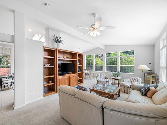 Located at the beloved Antonelli 55+ Member-Owned Mobile Home Park, this immaculate 3B/2B 1560 sq/ft home is truly a gem. The expansive living and dining rooms overlook a serene riparian area, an inspiring view that might make you never want to leave home. As a peaceful end unit, it offers exceptional privacy and tranquility. High ceilings create a bright, airy feel throughout. The spacious living room features a built-in entertainment center, while the large kitchen includes a tile floor, generous cabinetry, a skylight, and a cozy breakfast nook framed by a picture window looking out to the trees. The primary suite includes a walk-in closet and a bright, spacious bathroom. You'll also appreciate the convenient laundry room with extra storage. Both the side and backyard await your personal touches, and there's even a large storage shed for added utility. Guest parking is conveniently located right next to your home. Antonelli Park is a beautiful community offering a welcoming clubhouse, recreation room, and a swimming pool perfect for relaxing on sunny days. Centrally located near shopping, dining, entertainment, and the beach, this home combines comfort, convenience, and natural beauty in one delightful package.