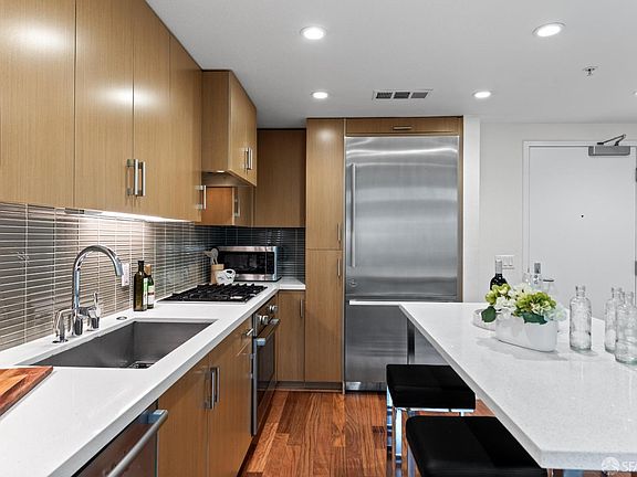 Sophisticated 2-level condo in vibrant Lower Pacific Heights! This well-maintained 1BD/1.5BA residence offers 793 sq ft of thoughtfully designed space with hardwood floors, custom window treatments, and a functional layout ideal for modern living. The main level features a spacious living and dining area, a stylish kitchen with quartz countertops and stainless steel appliances, and a convenient half bath. A private patio expands the living space outdoors. Upstairs, the bedroom suite offers great separation of space, ample closet storage, and a well-appointed ensuite bath. Additional highlights include in-unit laundry and 1-car garage parking. Community amenities include a fitness center, club room, secure bike storage, and a rooftop terrace with sweeping viewsperfect for relaxing or hosting friends. With close proximity to Fillmore Street dining, Japantown, grocery stores, and tech shuttle stops, this location offers a connected lifestyle. Enjoy easy access to downtown and beyond in a neighborhood where culture, convenience, and community come together.