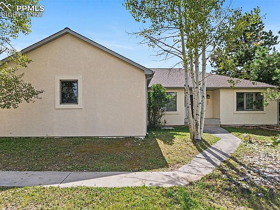 Welcome to this beautiful ranch-style home nestled on a spacious 42,000 sq ft lot with mature trees and stunning mountain views. Step inside to an inviting open floorplan featuring fresh paint, new carpet, and abundant hardwood floors. The large kitchen flows seamlessly into the dining and great rooms, highlighted by a one-of-a-kind river rock fireplace with built-ins—perfect for entertaining or cozy evenings at home. The main floor hosts a spacious primary suite with a walk-in closet and private 4-piece bath, along with a versatile secondary bedroom that can double as a home office. Downstairs, the finished basement expands your living space with a huge rec room, three additional bedrooms, and two full baths. With its blend of comfort, character, and space—both indoors and out—this home is the perfect retreat while still offering easy access to all Monument has to offer.