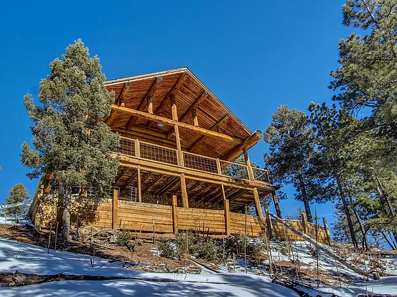 Incredible Full Log home on the very Top of Woodmoor Mountain. Spectacular Pikes Peak Views! Extra Large Scandinavian Scribed Colorado Spruce Logs with beautiful exposed beams and T&G Fir ceilings throughout the home. Beautiful Hardwood Floors with a Complete new Kitchen remodel.... New slab granite counters, New Stainless Steel appliances and New Custom Cabinets. Large Loft that could be a non conforming 4th Bedroom. Wrap around covered deck with Panoramic Views. Woodmoor Mtn is True Mountain Living! Gated community! $400 Annual HOA. No where else in Douglas County can you get this remote and still have a 45 min drive to Denver and/or C Springs. This is a very unique and special setting......Must see to appreciate!!