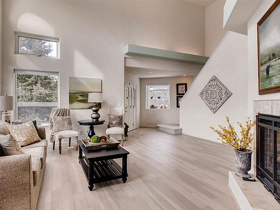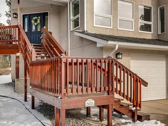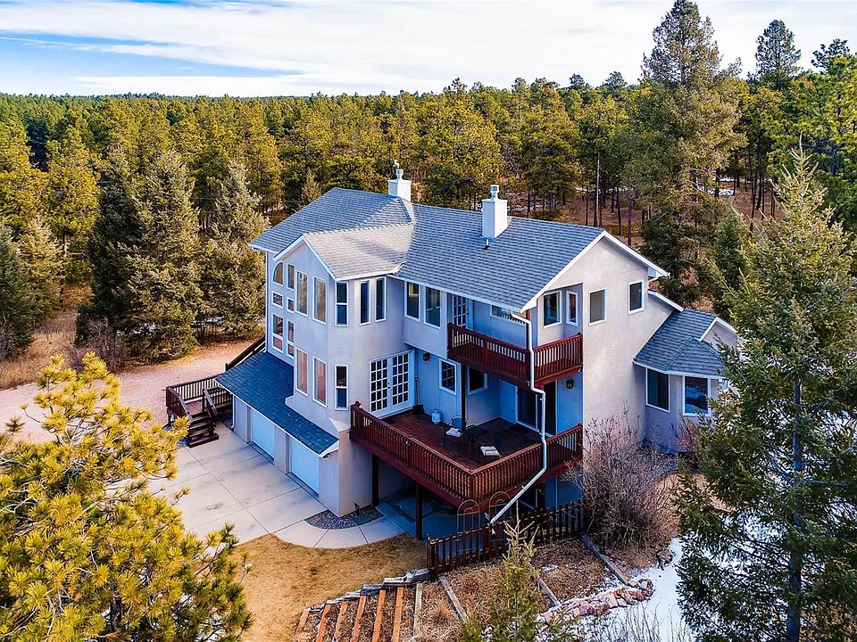 This is an absolute GEM of a home, tucked away in the woods on 5 fabulous acres within walking distance of Fox Run Park. This location cannot be beat with privacy and solitude but close to all major amenities - Flying Horse, The YMCA, and fabulous schools. Easy access to Hwy 83 or I-25, Hiking Trails, Golf, Sports, Riding and Cross Country Skiing. This beautiful 2 story home is 3 bedrooms, 3.5 baths, 2 car garage and a carport in the back of the home. The 5 acre lot has livestock fencing and a gate at the driveway that beckons you in to this peaceful retreat . Mature trees and perennials surround the property and add character and privacy. Step into this lovely charmer with new hardwoods and a wall of windows to let in the gorgeous sunshine. The open floor plan has a lovely living area with a gas fireplace and Dining area with French doors that lead to the outside deck. The kitchen has a farmhouse feel with a beautiful color palette.