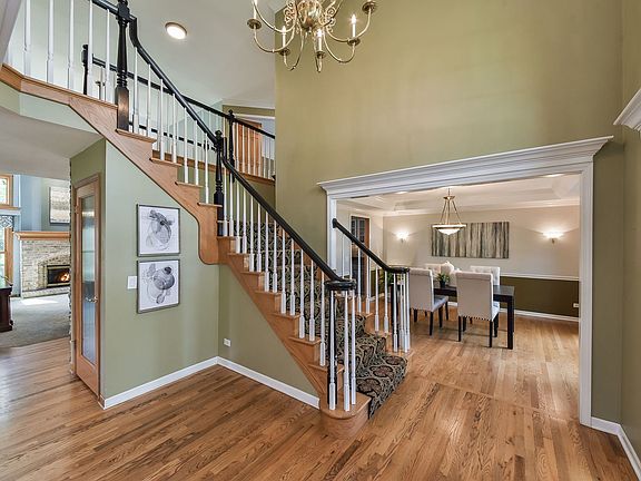 WELCOME HOME to this meticulously maintained Oakhurst North home, nestled on a NE facing serene half-acre lot with a 3-car garage. Crafted with a discerning eye, this original owner residence offers a one-of-a-kind open floor plan that sets it apart, highlighted by a thoughtful addition that creates an expanded kitchen and laundry room area. Upon entry, a 2-story foyer welcomes you with a split staircase, flanked by the elegant living and dining rooms. A fully equipped granite gourmet kitchen beckons with its expansive eating island, walk-in pantry, and a Butler's pantry for seamless entertaining. Adjacent to the kitchen, a spacious eating area overlooks the impressive 2-story family room with its brick front fireplace, wall of windows, and impressive stone accent wall. A standout feature of the main level is the remarkable laundry/mudroom addition, providing direct access to both the garage and the backyard multi-level patio area. A centrally located half bath completes the main level along with a private office adorned with built-ins, ideal for work or study. The generous size primary suite boasts a cathedral ceiling and an updated bath adorned with heated floors, split dual vanities, walk-in shower, whirlpool tub, and an expanded walk-in closet. Three additional sizable bedrooms on the upper level share a remodeled granite double vanity hall bath. The lower level features a full basement with a great amount of space for recreation and relaxation. Discover a large entertainment area with built-ins, a dedicated media/surround sound section, a bonus room with ample closet space, a full bath, a study bar, and extensive storage options, all perfect for versatile living. Outside, escape to your half-acre private oasis featuring a multi-tiered patio accessed through a sliding glass door from the kitchen. Enjoy a tranquil water feature, a wood-burning firepit, a semi-built-in grill station, and two covered cedar pergolas, ideal for alfresco dining and outdoor gatherings. This home has many updates including a sump pump with battery backup and water level monitoring system (2023), 50-gallon hot water heater, kitchen light fixtures, garbage disposal, and microwave (2020), family room stone accent wall (2018), new carpeting (2016), new driveway, furnace and air conditioner, garage doors and openers, outdoor coach lights, and half bath remodel (2014), new roof (2012). Other features include: All windows and doors replaced by Marvin, a 7-zone irrigation system, front and back door Ring doorbells, HVAC and front entry is controlled remotely via an app as well as garage doors which have MyQ technology that allows for remote opening and closing. Pool and clubhouse community (included with assessments...only one of its kind in the Eola corridor), close to the Rt. 59 train station, shopping, and schools. It's not just a home, it's a lifestyle living in the vibrant community of Oakhurst North!