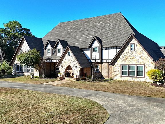 Whether your need is for a growing family, weekend getaway, or a multigenerational home, this house checks all the boxes! This one-of-a-kind, custom Tudor-style estate offers 6,580 sqft., which includes 7 bedrooms, 6.5 baths, a double island kitchen, a butler's pantry that opens to the formal dining room for effortless hosting, a flex space complete with a wet bar and stone fireplace, and a second, expansive flex space upstairs that has endless use possibilities. Set on over 7 acres, the property features 24 pecan trees, fig and pear trees, Japanese magnolias, and blueberry, blackberry, elderberry, and banana magnolia bushes. The backyard features a picturesque view of a shared 5-acre pond, an inground swimming pool, two gazebos with a picnic area, and a wet bar — perfect for entertaining. A 30x40 workshop and 3 car garage/carport provides ample space for projects or storage.
