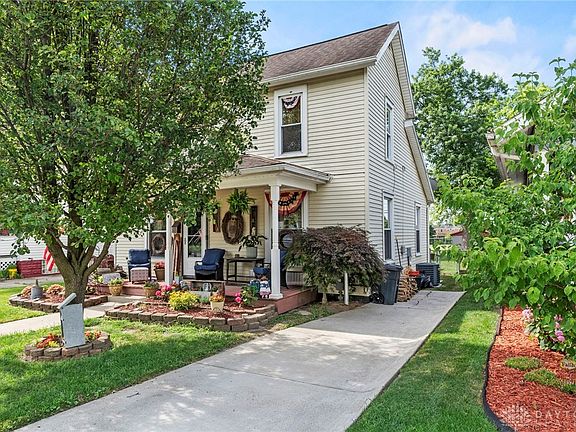 Welcome to this charming three-bedroom, one-bathroom home, offering 1,176 square feet of comfortable living space. Enter the home and find a comfortably sized dining room and living room before heading to the eat-in kitchen. The kitchen offers ample cabinet space, a tile backsplash, and farmhouse style sink including sleek black appliances. The laundry room off the kitchen offers a convenient location as well as ample room for supplies and storage. Upstairs, two of the three bedrooms are split with the large full bathroom equipped with a modern vanity, tile shower/tub combo and adequate space for future standup storage of linens and other necessities. This delightful residence also features a cozy covered front porch, perfect for enjoying your morning coffee. The sizable back patio is ideal for outdoor entertaining and leads to a spacious, fenced-in yard, providing both privacy and ample space. Additional highlights include a one-car detached garage, ensuring convenient parking and extra storage. This home seamlessly blends functionality with charm, making it the perfect place to create lasting memories. Don’t miss out on this inviting property—schedule a viewing today! *Back on market due to buyers financing*