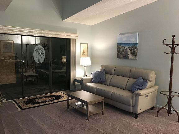 Fully furnished 2 bed 2 bath 3rd floor condo with upgraded master bath in great complex with heated pool, jetted spa, bbq grill and clubhouse. Electric, Internet, cable, water, washer and dryer included. Conveniently located to supermarkets, restaurants and beaches. 4 month minimum. Long term rental 7-12 months at reduced rate.