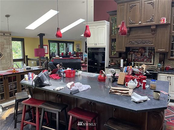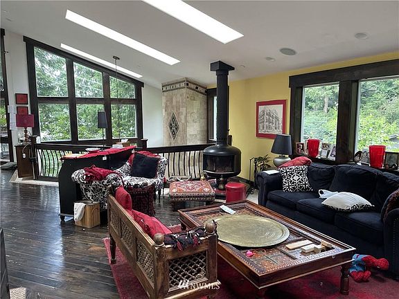 Great Seahurst home with 5 bedrooms, 5.75 bath. Well designed for the extended living. Double staircases, one going to the master suite with 5 piece bath and fireplace. 3 of the additional bedrooms have private decks, and one of them with private entrance. Large spaces show off the signature fireplace. Tile floors throughout the home. 2 car garage, 2 gas fireplaces and radiant floor heating. Glimpses of the sound in the summer and decent winter views.