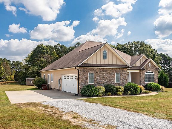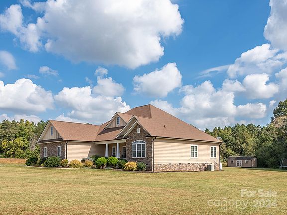 Gorgeous custom built ranch home in desirable Mt Ulla area on approx. 3.48 acres. Open floor plan with beautiful hardwood flooring featuring kitchen with lots of custom cabinetry, granite countertops, ss appliances, eat-in bar area & breakfast area; Great room offers cozy stone gas log fireplace; formal dining area open to the great room; split bedroom plan; 2 secondary bedrooms with their own full bath; Primary bedroom has sitting area w/windows and primary bath features walk-in shower and garden tub, dual sinks w/granite tops; walk-in closet; 4th bedroom/office; Rocking chair front porch that overlooks large front yard; back covered porch and patio...great for entertaining; 2 car garage; storage building. Get away from the busy Mooresville/Troutman area to this peaceful country setting! Large backyard...perfect for your future pool.