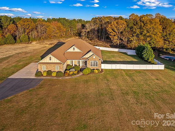 Beautiful custom ranch on 3.48 acres in desirable Mt.Ulla! Featuring a new inground pool & spa, fenced backyard, paved driveway, and fresh new carpet and paint throughout. Open floor plan w/hardwood floors, spacious kitchen w/granite counters, abundance of cabinets, & new ss appliances; Great room w/stone-accented fireplace; breakfast area and dining area; Split bedroom layout includes a large primary suite w/office or sitting area featuring built-ins, walk-in closet, dual sinks, tiled shower & garden tub; Secondary bedrooms are generously sized w/ bath access. 4th bedroom/Bonus Room w/walk-in closet. Enjoy multiple outdoor living spaces that include a rocking chair front porch, covered back porch, & stamped patio w/firepit; Epoxy floor in Garage; Whole house Generator, washer/dryer & refrigerator included. Move-in ready and convenient to Mooresville, Troutman & Salisbury! Located in the Award Winning Mt Ulla Elementary School District!