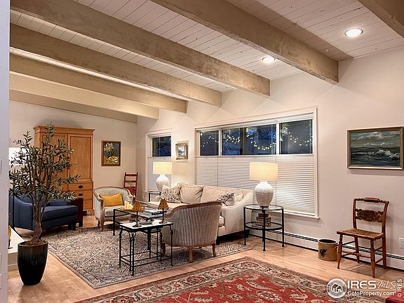 Rarely available mid-century modern ranch home on sought after location 1 block from CU stadium/engineering school, bike path and bus lines. 2 wood-burning venetian plastered fireplaces warm the open concept living/dining/kitchen--complete with exposed beam and wood vaulted ceilings. Kitchen is a chef's dream with stainless steel Viking appliances. Catch amazing sunsets over the flatirons from the front porch or the foothills from the back patio. Oversized lot (.34 acres) and the garage is heated with workshop area.