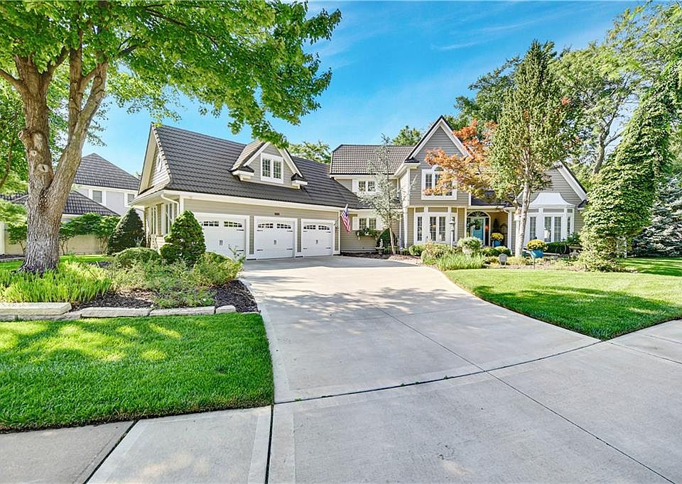 "New England Charm in the Midwest” Step into timeless elegance with breathtaking views and exquisite architectural detail in this custom-designed Rick Akers home. (The pictures do not even do this property justice… see attached video.)Nestled on a wooded cul-de-sac lot, this 1.5-story retreat offers 5 bedrooms, 3 full baths, and 2 half baths—delivering the ultimate golf course lifestyle. The soaring 16-foot living room welcomes you with a grand stone fireplace flanked by French doors that open to a cozy four-seasons room—the perfect spot for morning coffee while watching deer and wildlife. The gourmet kitchen is a chef’s dream, featuring a large island, premium appliances, and a reverse osmosis water filtration system. Gather in the warm hearth room with its second fireplace and backyard views, or enjoy the charming breakfast nook that flows onto the beautifully remodeled deck. The main-floor primary suite boasts a spa-like bath and a custom walk-in closet with washer/dryer hookups. Upstairs, pristine new carpet leads to three generously sized bedrooms, each with walk-in closets. The finished daylight lower level is built for entertaining, with a large rec room, full bar, workout area, and a private fifth bedroom. Outdoors, multiple seating areas provide an entertainer’s paradise with the perfect balance of sun and shade. Living in Cedar Creek means access to premier amenities—pools, clubhouse, scenic trails, a 65-acre lake, indoor courts for basketball, volleyball, and pickleball. Plus, become a member of one of the finest private golf clubs in the Midwest. Don’t miss this rare chance to own a stunning home bordering Kansas City’s most picturesque golf course.