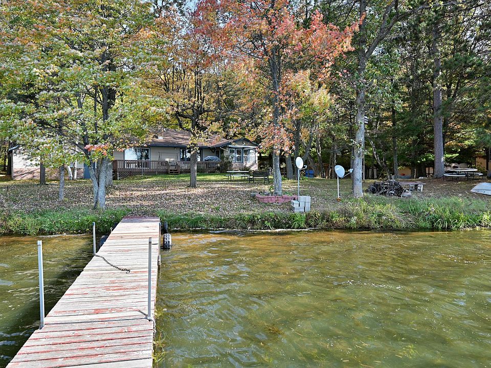 Great opportunity for a weekend retreat or cozy year-round home along the quiet north shore of Lake Lipsett near Spooner, just two hours from the Minneapolis metro. This cabin has large living spaces including lakeside deck and four-season room, living room w/ FP and lakeview picture window, a large den also lakeside and a LL family room. The three-level split has two bedrooms up with full bath on main level. Oversized one-stall garage, garden storage shed and new septic system in 2021. Dock is included in the sale. Level lake frontage on Lipsett Lake which is just under 400 acres and known for its' fishing. Many year-round recreational opportunities in Burnett County with shops/restaurants in nearby Spooner.